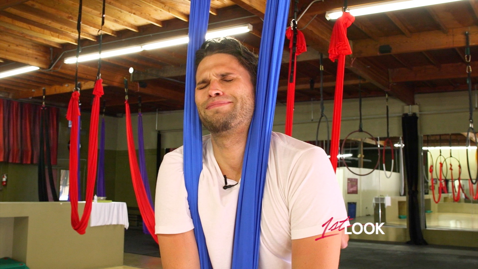 Vanderpump Rules’ star Tom Schwartz joins Ashley for AntiGravity Aerial Yoga, a fusion of yoga, Pilates, and aerial arts all done in a fabric hammock. It’s a workoutform that looks graceful, unless you’re Tom.